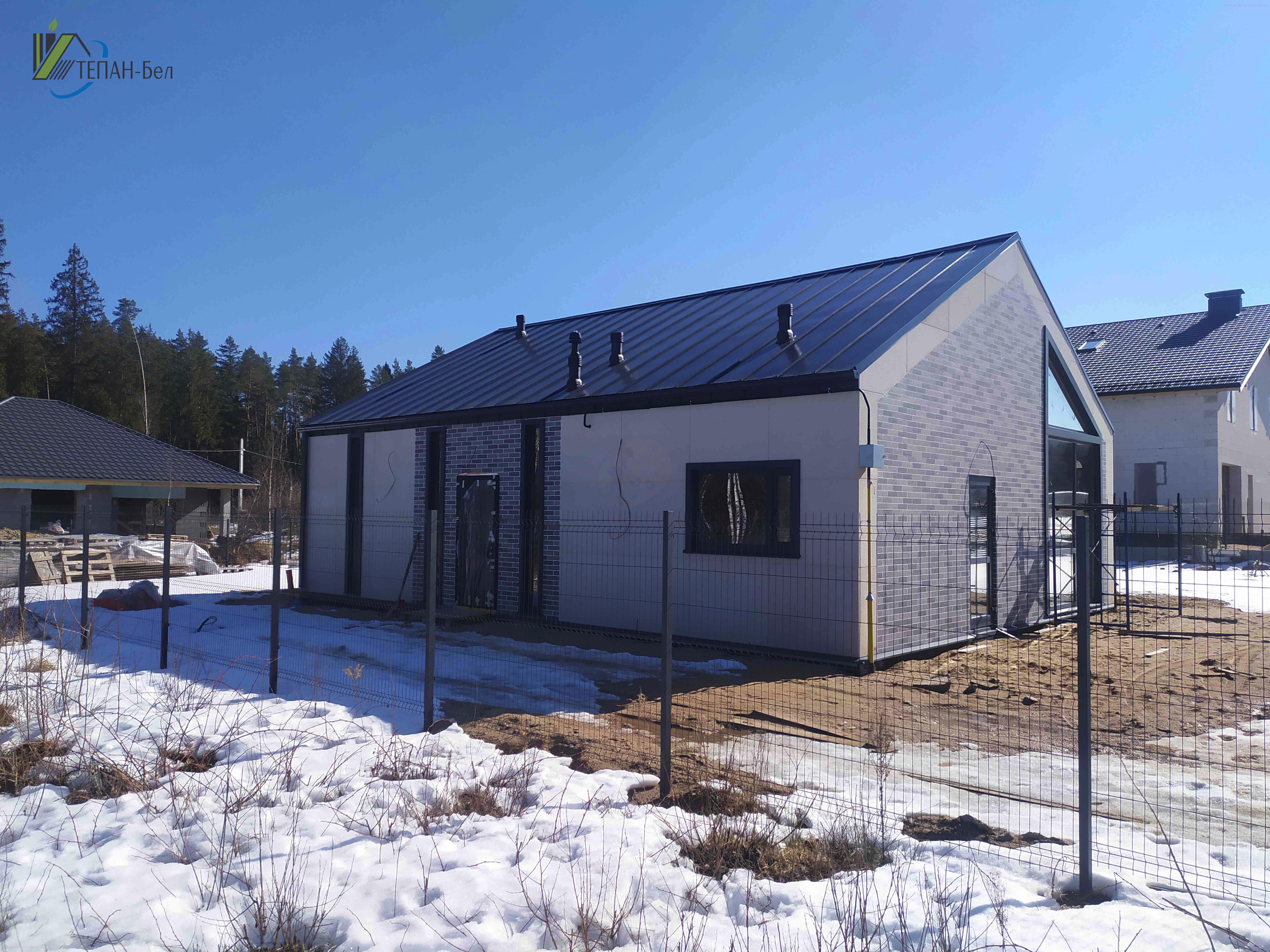 В конечном итоге при сопоставимом качестве и тепловой защите наш дом окажется дешевле и быстрее построен. Наши панели абсолютно самодостаточный продукт (качество проще обеспечить в заводских условиях, а не на стройплощадке.). Они легко и быстро собираются на металлокаркас и через 2-3 недели Вы получаете готовый дом, требующий только внутренней отделки на готовую гладкую стену.